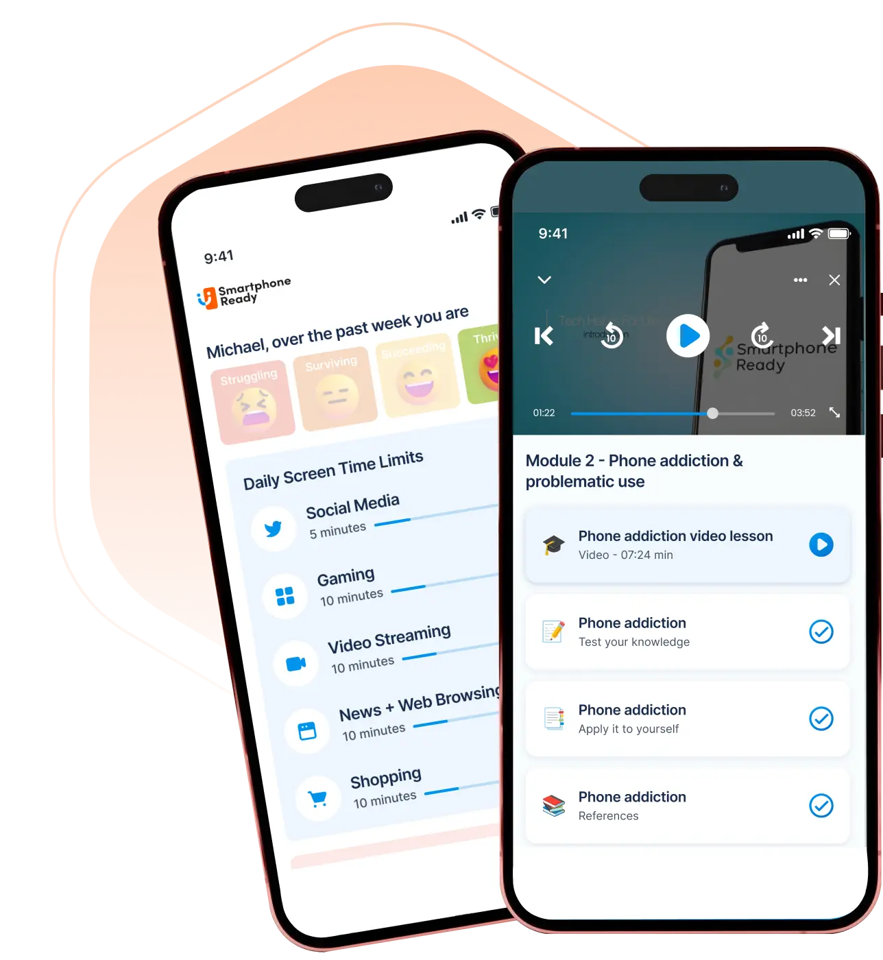 Smartphone Ready helps your kids build healthy phone habits and self-control, with tools that do the hard work for you.