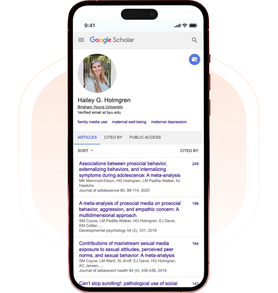 We’re Johnny and Hailey Holmgren. Hailey is a PhD-level researcher who has spent nearly a decade studying the impact of media on families. Since 2020, her work has been cited nearly 1,500 times — much of it focused on smartphones, youth, and digital wellbeing.